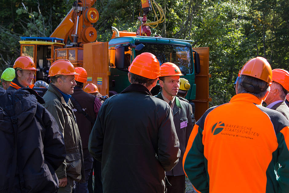 Die neutral präsentierten Arbeitsverfahren wurden durch mehr als 30 Aussteller ergänzt. Sie führten ihre - zum Thema passenden - Produkte vor. Dabei stießen Forstmaschinen, die für den Einsatz auf nassen Waldstandorten mit speziellen Bändern, angepasster Bereifung oder neuartigen Laufwerken ausgestattet waren, auf besonderes Interesse.
