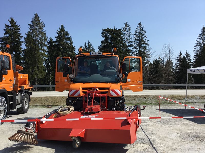 Auf einem extra ausgewiesenen Bereich konnten den ganzen Tag verschiedene Fahrzeuge zudem Probe gefahren werden. Ein Lindner Unitrac 112 LDrive, ein Kärcher MC 130, ein Hansa APZ sowie unterschiedlichste Unimog-Modelle standen hier zur Verfügung. Das Angebot wurde von den Besuchern sehr gut angenommen und auch kleinere Wartezeit wegen der großen Nachfrage sind dafür gerne in Kauf genommen worden.
