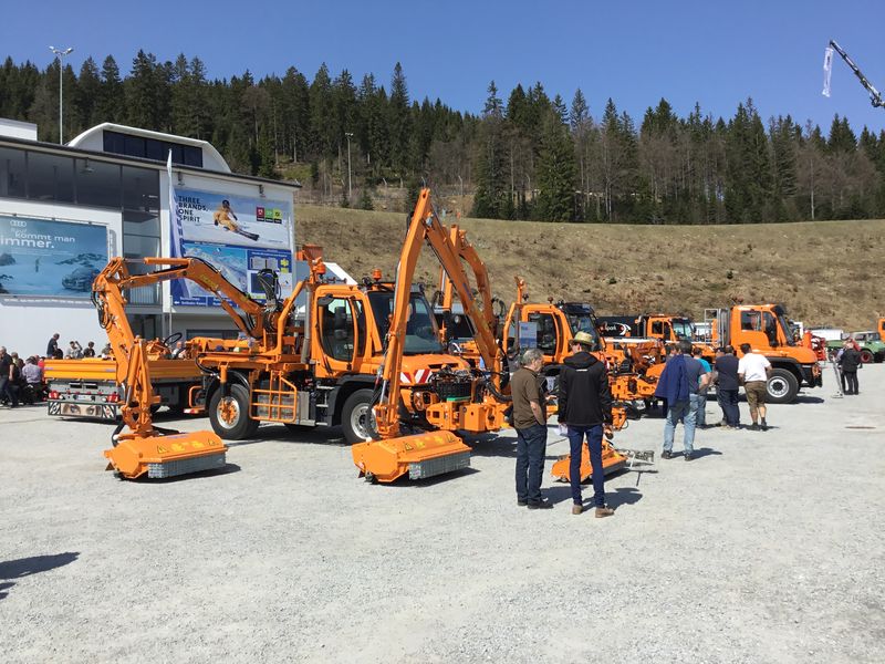 Im Mittelpunkt stand der Unimog als Klassiker unter den Mehrzweckgeräteträgern im Kommunalbereich. Zusammengefasst unter den Themenbereichen Winter- und Sommerdienst wurden alle erdenklichen Anbaugeräte rund um den Unimog gezeigt. Im Sommerdienst wurde unter anderem die neuste Technik der MULAG-Mähgeräte, der Kehrmaschinen von AEBI Schmidt und der Mähkombinationen von Dücker vorgeführt. Auf der anderen Seite im Winterdienst fand man Streuer, Schneefräsen und -pflüge der Firmen Kahlbacher, Gmeiner und AEBI Schmidt. Die Beutlhauser-Werkstattmeister zeigten auch immer wieder, wie schnell man einen Unimog U218 von Winterdienst auf Sommer und umgekehrt innerhalb kürzester Zeit umrüsten kann, dabei gab es für den einen oder anderen Besucher noch einen praktischen Tipp. Neu war auch der U529 – der Unimog für die Landwirtschaft und die Lohnunternehmer, eine effiziente Lösung für alle Einsätze zwischen Äcker, Straßen und Silo.