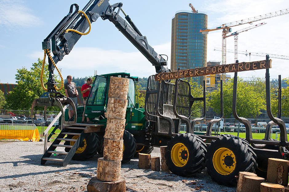 Auf dem Freigelände 3 wird der Schnupper-Forwarder für Action und Nervenkitzel sorgen. Junge Berufsleute sowie Profis haben Gelegenheit, mit ruhiger Hand den Joystick des Forwarderkrans selber zu bedienen und vielleicht sogar einen Preis zu gewinnen. Organisiert wird dieser Wettbewerb vom Verband "Forstunternehmer Schweiz" (FUS).