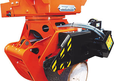 Vor dem Bierzelt veranschaulichen beim 40jährigen Jubiläum der Firma Kinshofer zwei Geräte aus der Anfangszeit und ihre aktuellen Nachfolger die rasante Entwicklung auf dem Gebiet der hydraulisch betriebenen Anbaugeräte für Ladekrane und Bagger. |