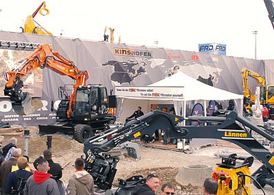 Er spannte den Bogen von der Entwicklung der ersten Krananbaugeräte über jene der schweren Baggeranbaugeräte bis zu den neuesten Produktgruppen wie dem prämierten HPXdrive, den NOX Tiltrotatoren und den brandaktuellen RA Schwenkantrieben. Und er brachte es auf den Punkt, Qualität war und ist oberste Priorität des hochmodernen Unternehmens KINSHOFER, das seine Produkte selbst entwickelt, testet und fertigt: „made in Germany“ eben. Auch der als Ehrengast anwesende Firmengründer Alfred Kinshofer (und Vater der bekannten Skifahrerin Christa Kinshofer) konnte dabei die spannende Gründung illustrieren – alles begann in einer Miesbacher Garage mit nur einem Mitarbeiter.