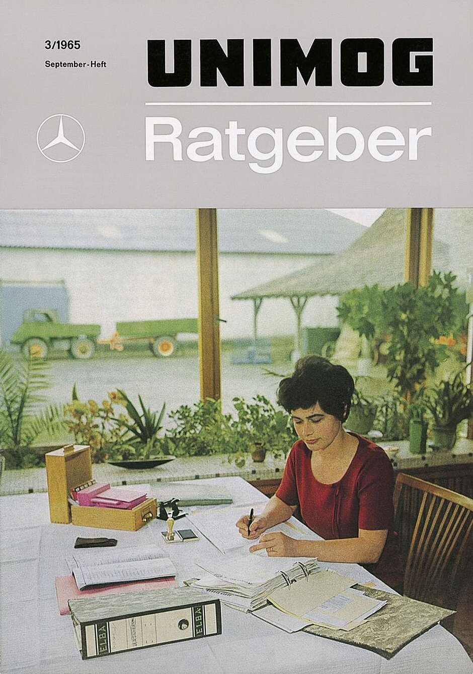 65 Jahre Unimog-Magazin - 1953 erschien die Vorläufer-Version „Unimog Ratgeber“ und richtete sich vor allem an die landwirtschaftliche Klientel. So ging es unter der Überschrift „Zeit ist Geld“ um die höhere Geschwindigkeit des Mercedes-Benz Unimog gegenüber den damals langsam vor sich hin tuckernden Traktoren: „Seine Geschwindigkeit halbiert die Wegezeiten und trägt somit wesentlich zur Rationalisierung des landwirtschaftlichen Betriebs bei. Unimog-Besitzer können so ein Drittel ihrer Arbeitszeit und mehr einsparen.“