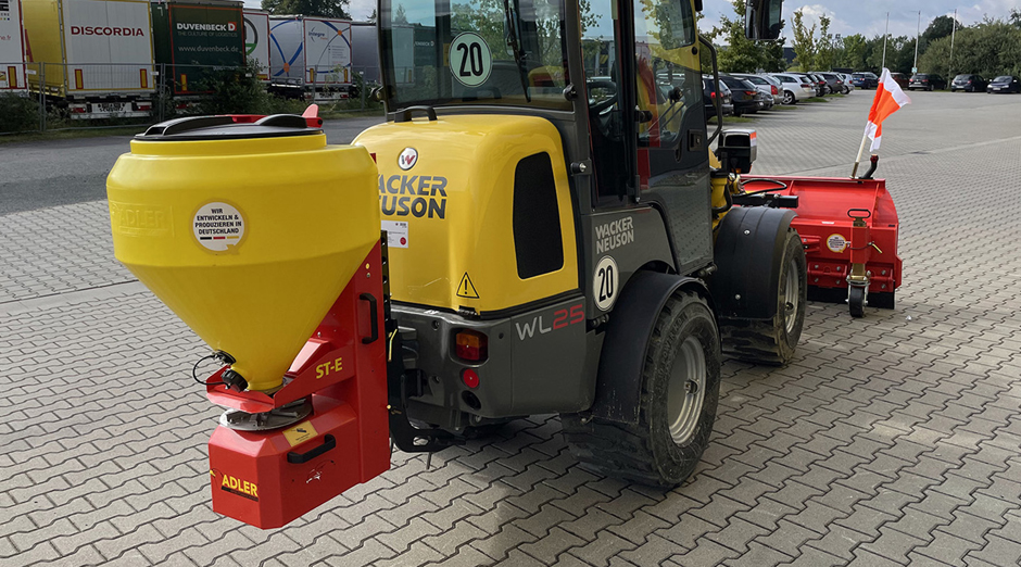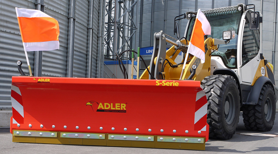 Alle Jahre wieder stellt der Winter Privatunternehmen, aber auch Kommunen vor enorme Herausforderungen, denn sie müssen die gesetzlich vorgeschriebenen Verkehrssicherungspflichten einhalten. Mit Anbaugeräten von ADLER können Anwender dabei flexibel reagieren. Dazu lässt sich zum Beispiel ein Fahrzeug im Frontanbau mit einem Schneeräumschild und im Heck mit einem Salzstreuer kombinieren. Für flexible Einsätze eignet sich besonders das Vario-Schneeschild der V-Serie. Durch die variablen Einschwenkmöglichkeiten (30 Grad) nach rechts und links, sowie in V- und Y-Form, werden einfach und effektiv Straßen, Rad- und Gehwege sowie alle großen Flächen wie Park- und Gewerbeplätze vom Schnee befreit. Die Räumbreite des Schneepflugs beträgt bis zu 3,30 Meter.