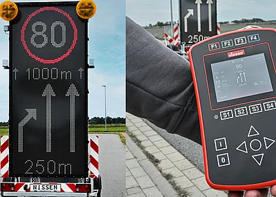 Für hohe Sicherheit und eine noch bessere Vorwarnung empfiehlt Nissen zusätzlich den Einsatz des Faltsignals TrioSign. Dieses gibt es in verschiedenen Größen, und es kann individuell mit dem Zusatz „Mäharbeiten“ oder anderen Schriftzügen versehen werden. Mit dieser professionellen Ausstattung sind Straßenarbeiten effizient, sicher und regelkonform abgesichert – für einen reibungslosen Ablauf und den Schutz aller Beteiligten im Straßenverkehr.