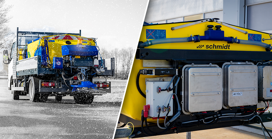 Aebi Schmidt hat vor kurzem die neuen eSyntos-Feuchtsalzstreuer vorgestellt. Erste Schritte in der Entwicklung eines elektrischen Streuers wurden bereits 2020 gemacht. In den letzten beiden Wintern hat sich die Technik im Einsatz bewiesen. Erkenntnisse aus diesen Tests flossen in das Serienmodell ein. Dieses verfügt über ein frontmontiertes Batteriepaket (max. 2x 4.1 kWh, 48 V) und einen Elektromotor und arbeitet damit völlig unabhängig vom Trägerfahrzeug. Besonderheit: Der Streuer behält seine volle Leistung bei und wird nicht durch die üblicherweise begrenzte Leistung des Trägerfahrzeugs in seiner Leistung eingeschränkt. Beim Aufbau auf einem Elektro-Trägerfahrzeug bleibt zudem die Reichweite des Trägerfahrzeugs unverändert.