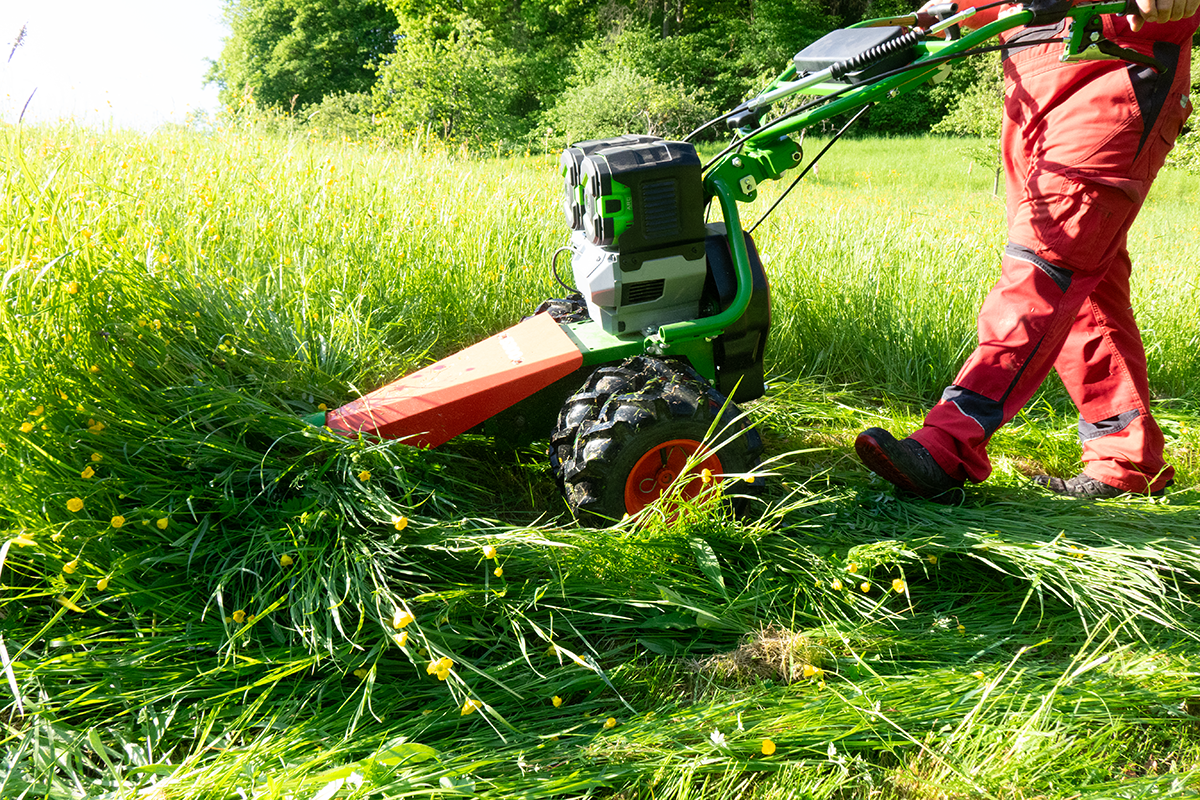 Die Maschinen arbeiten rein elektrisch, was zu emissionsfreiem Arbeiten in Bezug auf Abgase und Lärm führt. Da keine Öle und Betriebsstoffe benötigt werden, sind Arbeiten in sensiblen Bereichen wie zum Beispiel Naturschutzgebieten oder auch in Gewächshäusern möglich. Bei der 5300e haben Kunden die Wahl zwischen Kommunalmähbalken oder Universalmähbalken in den Breiten 105 cm bzw. 122 cm und der klassischen Ackerstollenbereifung oder 5,5-Zoll-Eisengitterrädern. Für die 0100e steht neben den klassischen Hackwerkzeugen auch ein Volldrehpflug für die professionelle Bodenbearbeitung zur Verfügung.