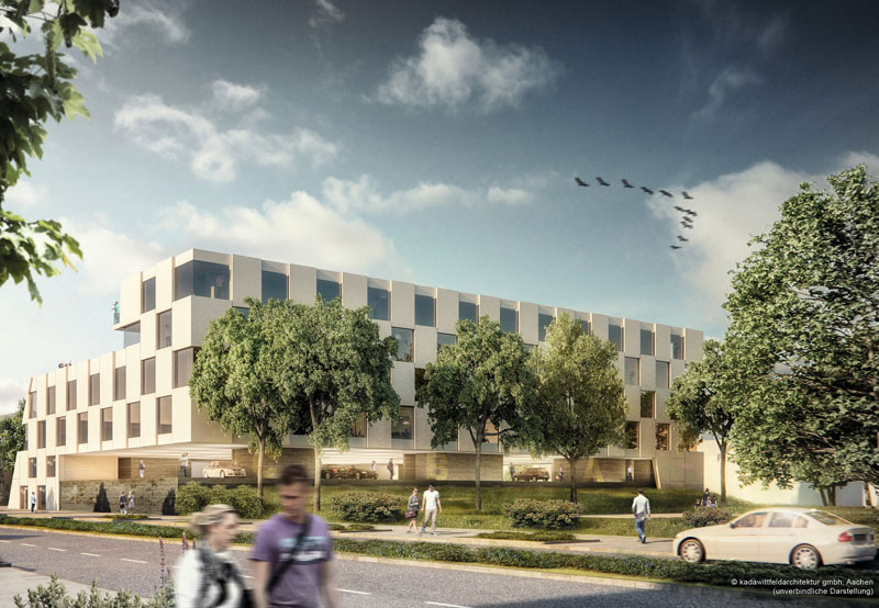 Die CG Elementum setzt mit dem Dortmunder Projekt im Bereich der Ruhrallee eine besonders anspruchsvolle Aufgabe um: Auf einem ehemaligen Befehlsbunker, der früher dem Katastrophenschutz diente, wird durch eine Aufstockung Wohnraum geschaffen. In innenstadtnaher Lage, angrenzend an eine kleine Parkfläche, verfügt das Projekt über einen interessanten Standort. Der Bestandsbau an sich gilt jedoch baulich als Herausforderung. Er soll sich nun zu einem ansprechenden Komplex wandeln und somit neu genutzt werden. Es entstehen 65 Wohneinheiten mit einer Fläche von rund 4.350 Quadratmetern, eine Tiefgarage mit 60 Plätzen sowie eine Gewerbeeinheit mit 30 Quadratmetern. Gestalterisch lockern sowohl ein halb offenes Parkdeck zwischen Bunkerdecke und Wohnebene als auch die großzügigen Fensterflächen das Erscheinungsbild des Neubaus auf. Zudem werden die Etagen tribünenartig angeordnet, sodass das Gebäude über drei bis fünf Ebenen verfügt. Dies trägt ebenfalls zum architektonischen Gesamteindruck des Baus bei.