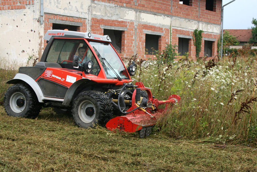 In diesem Fall wurden das Mulchgerät speziell für die Traktoren Reform konfiguriert. Eine äußerst flexible Konfiguration. Einer der verantwortlichen Personen des Unternehmens HIDROGRADNJA OSIJEK hat uns bestätigt, dass die technischen Merkmale unserer Mulcher alle Ihre Anforderungen erfüllen. Außerordentliche Eigenschaften: Dazu gehört die zu öffnende vordere Haube, um das Schneiden von Sträuchern und hohem Gras zu optimieren und zu vereinfachen; der Schwerpunkt der Maschine liegt sehr nahe dem Traktor, dies ermöglicht eine höhere Wendigkeit auf steilem Gelände. Die Möglichkeit die Drehrichtung des Rotors zu ändern, verbessert das Schneiden von sehr hohen Pflanzen. Das Sicherheitssystem STOPSAFE™ verhindert die Verwendung des Mulchers auf unsachgemäße Weise. Ein optimale Ergebnis, welches über viele Jahre der Zusammenarbeit und Entwicklung mit den Kunden erreicht wurde.