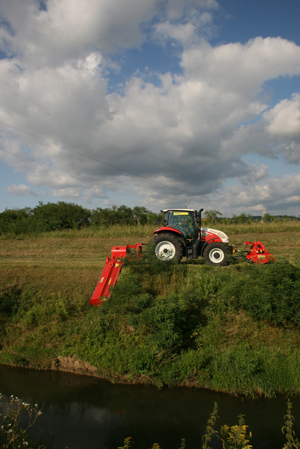 Das Lohnunternehmen PRESOFLEX beschäftigt sich mit verschiedenen Bauprojekten und Instandhaltungsarbeiten. Mit einer Flotte von mehr als 50 verschiedene Maschinenarten, sind sie in der Lage sich um alle Arbeit bezüglich dem Erhalt der kroatischen Flüsse und die ständige Instandhaltung der Infrastrukturen zu kümmern. Die Vier-Jahres-Verträge, die durch öffentliche Auftragsvergabe erworben wurden, verwenden alle Maschinen, auch die des Unternehmens SEPPI M. für eine Vielzahl von Arbeiten. Aber sehen wir uns mal die Details näher an: Die Wachstumskontrolle der Vegetation, die unerlässlich für die ordnungsgemäße Funktion der Kanäle ist, erfolgt durch die Mulchgeräte SEPPI M. Modell SMO fh 250 und SAV 275. Beide Maschinen arbeiten gleichzeitig auf demselben Traktor STEYR PROFI CLASSIC 4110 mit einer erhöhten Leistung (140 PS).