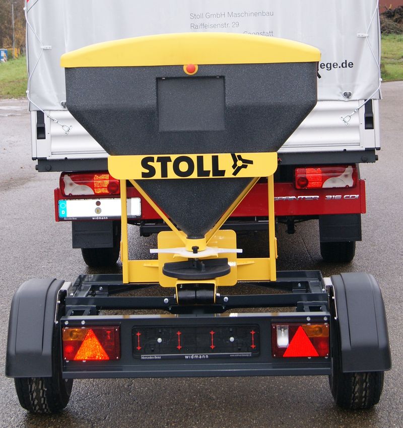 Streugeräte baut STOLL von 120 – 2000l als Schleuderstreuer – zusätzlich werden Kastenstreuer, Selbstladestreuer und Nachlaufstreuer produziert.