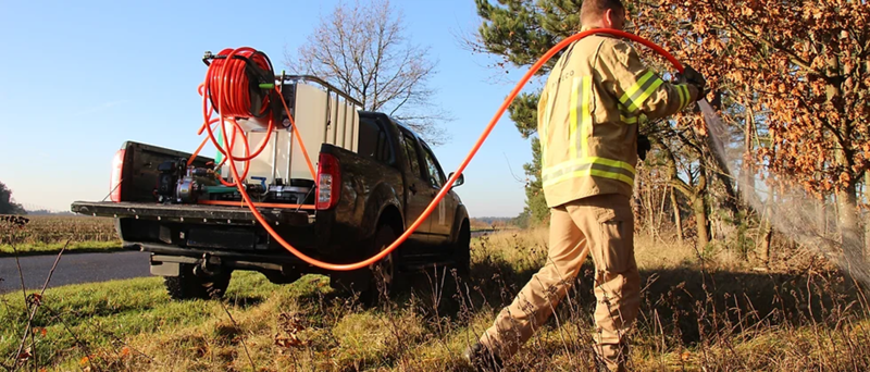 Eine weitere Möglichkeit sind kleinere, an der Fronthydraulik mitgeführte Löschsysteme. Die Möglichkeiten reichen dabei von einfachen Wasserbehältern in Form eines IBC mit einer benzinbetriebenen Pumpe bis hin zu professionellen, mobilen Brandunterdrückungsanlagen. Für Kontrollfahrten etwa mit einem Pick-Up bietet das WKR zudem eine Anleitung zum einfachen Aufbau einer Löscheinrichtung, die Bauteile sind alle in normalen Baumärkten bzw. dem Fachhandel zu bekommen.