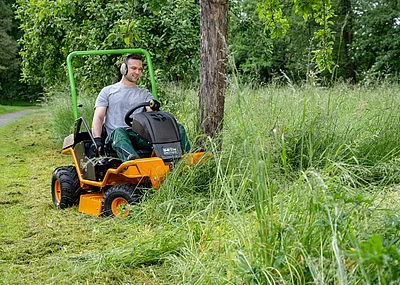 Um den Rücken bestmöglich zu schützen, hat der Komfortsitz des Ikons eine extra hohe Rückenlehne. Gleichzeitig erleichtert die erhöhte Sitzfläche das Aufstehen und Hinsetzen, und die klappbaren Armlehnen entlasten die Schultern. Mit seinen dekorativen Ziernähten ist der Sitz nicht nur bequem, sondern trägt auch seinen Teil zum dynamischen Erscheinungsbild des neuen Zero-Turn-Mähers bei.