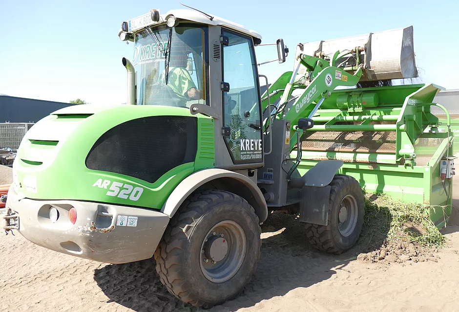 „Ich bin zwar zwei Meter groß, kann aber trotzdem in jedem Weycor-Radlader bequem sitzen und arbeiten“, sagt Jens Binnemann, der Werkstattleiter von Kreye GaLaBau. Das ist für einen Arbeitsplatz, der tagtäglich und oftmals für viele Stunden genutzt wird, wirklich wichtig. Auch in dicker Winterkleidung fühlt er sich in der Kabine nicht eingesperrt. Zudem ist beim Thema Sicht ein technisches Detail von großer Bedeutung – die Weycor-Z-Kinematik. Die zum Vorderwagen verjüngte Ladeschwinge erlaubt beste Sicht auf das unmittelbare Arbeitsfeld und das Anbauwerkzeug. Darüber hinaus macht die Z-Kinematik hohe Reißkräfte und Hubhöhen möglich. Sie bietet außerdem optimale Voraussetzungen für den Einsatz von Palettengabeln. „Natürlich sind unsere Radlader mit einer Zentralschmieranlage und Bioöl ausgerüstet. Auch das spart Zeit und Geld“, ergänzt Binnemann abschließend.
