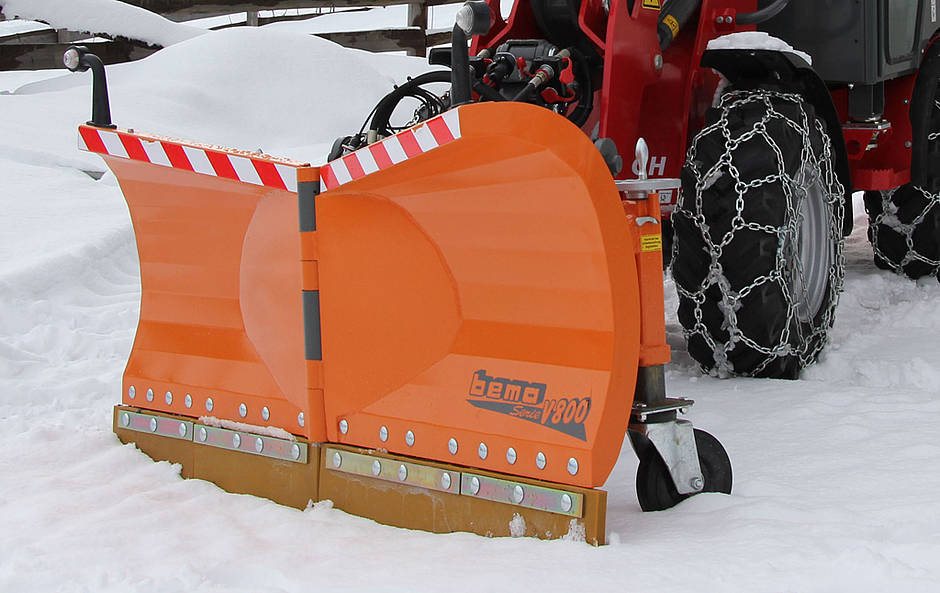 Bedeutend für die Variabilität des Schildes ist der stabile Drehpunkt in der Mitte des Schildes, der mit einem deutlich größeren Durchmesser gegenüber anderen Produkten in diesem Segment ausgestattet ist. Für eine hindernisfreie Schneeführung sorgen die Wölbung des Schneeschildes, die beim bema V-Schild V800 bereits im unteren Drittel beginnt, und die Federklappensegmente, die mit verschleißarmem Vulkolanbesatz ausgestattet wurden. Eingesetzt werden kann das V-Schild an allen bekannten Trägerfahrzeugen.