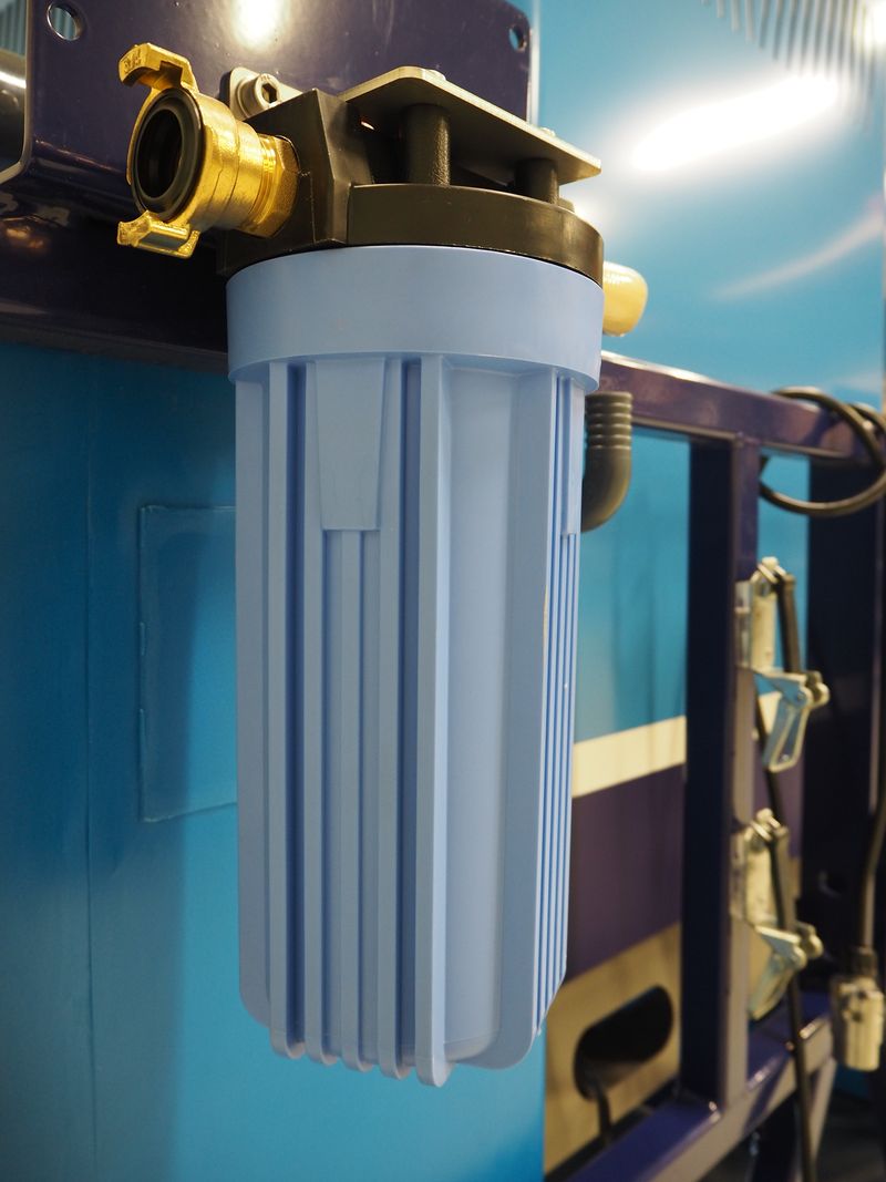 Das Kernstück des Wildkrautbekämpfungsgeräts WeedMaster M sitzt auf einem Schlepperrahmen, der am Heck der Maschine eingehängt wird. Wie bei der Kompaktversion bekannt, verfügt das Modell über einen robusten Honda GX-Motor mit Elektrostart. Ausgestattet mit der Kochend-Heißwasser-Technik schafft der WeedMaster M eine Leistung von 11 l/min, bei einem maximalen Arbeitsleistungsdruck von 50 bar. Als 3-Punkt-Lösung besitzt das Gerät rechts und links zwei blaue Kunststoff-Wassertanks mit jeweils 325 Liter Fassungsvermögen. Durch das in den Tanks integrierte Schauglas hat der Anwender stets die noch vorhandene Wassermenge im Blick. Beim Befüllen verhindert ein Wasserfeinfilter mit Kupplung, dass Sand oder andere Rückstände im Wasser in das System gelangen und dort Leitungen oder Düsen verstopfen. Über einen sechs Meter langen Anschlussschlauch wird der WeedMaster M mit dem Frontanbau verbunden – die Montage erfolgt dabei ganz einfach über Schnellkupplungsanschlüsse. Mithilfe eines 12-V-Magnetventils, das an der Front zum Einsatz kommt, kann über einen Schaltkasten im Fahrerhaus die Wasserzufuhr zur Unkrautdüse ganz einfach ein- oder abgeschaltet werden. Durch die im WeedMaster M integrierte Schlauchhaspel kann zusätzlich im händischen Einsatz mit der Wildkrautlanze dem störenden Grün der Garaus gemachen werden. Dazu muss nur der in der Maschine angebrachte Kugelhahn betätigt werden.
