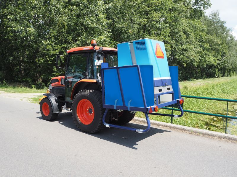 Die neue 3-Punkt-Lösung verfügt außerdem bei beiden Modellen über eine Halterung für eine Hochdruck- und Wildkrautlanze. Für das Einhalten der Verkehrssicherheit ist die Schlepper-Variante mit 12-V-Rückleuchten mit einem siebenpoligen Stecker ausgestattet. Das Gesamtgewicht an Front und Heck beträgt so im Ganzen rund 1,2 Tonnen. Dabei lässt sich die Konstruktion aber sehr leicht und vor allem schnell händisch an- und auch wieder abmontiert. So steht der Schlepper in kürzester Zeit wieder für neue Einsatzbereiche bereit.
