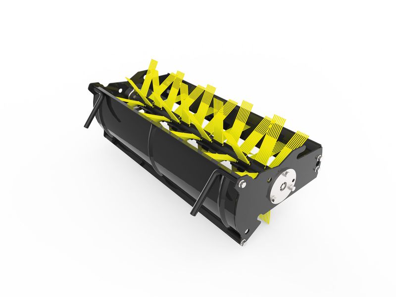 Die bewährten und im Rasenland England entwickelten Grasfangborsten des Rasenpflegesystems sind jetzt ebenfalls als Kassettenmodul umgesetzt, sodass sie leicht und bequem zu entnehmen und zu lagern sind, während der Vertikutierer- oder der Kehrbürsteneinsatz in Aktion sind. Die Grasfangborsten-Kassette gehört bereits zum Standardlieferumfang der Rasenpflegemaschine. Sie nimmt das Schnittgut auf, kämmt Moose und Filz aus, belüftet den Rasen, erfasst das Schnittgut, Moose, Filze und Laub, ob trocken oder nass, und transportiert sie in die Grasfangbox. Die integrierte Rasenwalze walzt die Grasnarbe direkt nach dem Mäh- und Sammelvorgang an.
