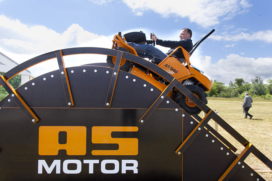 Wer will, kann sogar selbst die Fernbedienung in die Hand nehmen. Auf der GaLaBau, der Fachmesse der Garten- und Landschaftsbau-Branche in Nürnberg, können Interessierte unter anderem den ferngesteuerten Aufsitzmäher AS 940 Sherpa 4WD RC selbst testen. Denn die Außenfläche der AS-Motor Germany GmbH & Co. KG ist keine statische Ausstellung: Hier bewegt sich was.