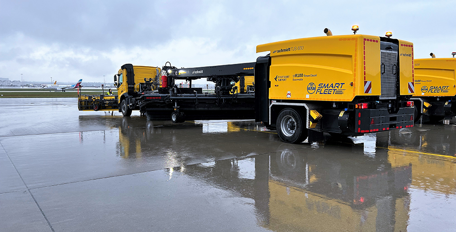 Neben dem kommunalen Winterdienst spielt das alljährliche Schneeräumen auch auf Flughäfen eine wichtige Rolle. Immerhin will niemand, dass eine Boeing 747 mit 371 Passagieren bei der Landung auf vereistem Boden die Kontrolle verliert. Runway, Rollwege und das Flugplatzvorfeld müssen deswegen innerhalb kürzester Zeit von Schnee und Eis befreit werden. Dabei kommt es auf jede Minute an, um den Flugzeugen einen termingerechten Abflug zu ermöglichen. Um so effektiv wie möglich zu arbeiten, setzt die Flughafenverwaltung auf mehrere Spezialgeräte, die in einstudierten Formationen gleichzeitig räumen. Für die Fachkräfte ist hier vor allem Gründlichkeit und eine gute Koordination gefragt.