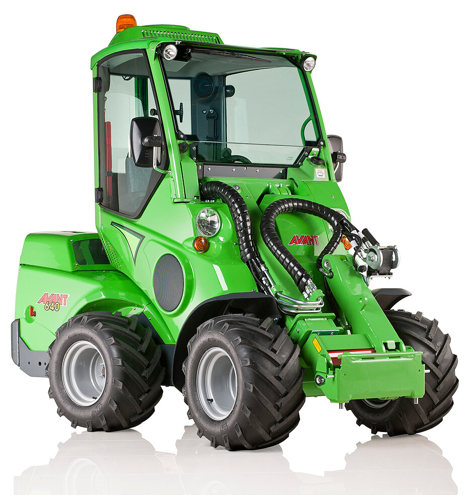 Er hat ein Einsatzgewicht von 1.520 kg, eine Hubkraft von 1.100 kg und wird angetrieben von einem verbrauchsarmen Kubota 4-Zylinder Dieselmotor. Bei einer Ölmenge von 66 l für die Zusatzhydraulik wird ein Druck von 205 bar entwickelt. Und, besonders wichtig, die Länge beträgt 2,55 m und die Breite 99 cm (bei anderen Bereifungsarten bis zu 1,29 m). Man kann hier wirklich zu Recht von einem kleinen grünen Speedy sprechen, der hervorragend dort einzusetzen ist, wo man Kraft und Beweglichkeit braucht, aber dies möglicherweise auch an voneinander entfernten Orten. Er ist das ideale Arbeitsgerät zum Beispiel auf Golfplätzen im GaLaBau oder für lange Strecken, die im Winterdienst zu reinigen sind. Ideal ist auch die serienmäßige Ausstattung mit einem Teleskophubarm, einem dritten Steuerkreis und der Traktionskontrolle. Diese gehört zur Standardausrüstung des AVANT 640.