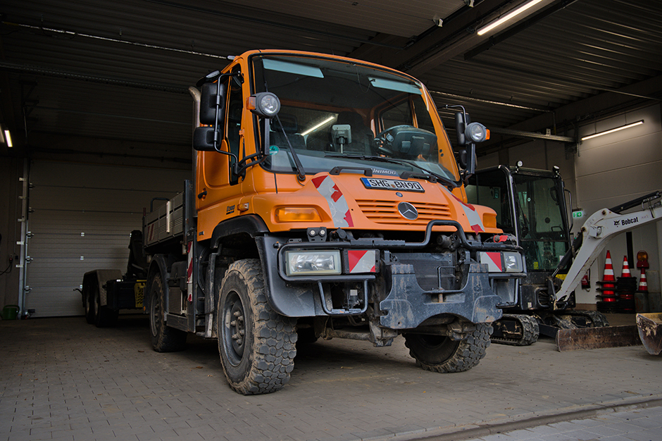 Doch nicht nur auf die richtige Maschine kommt es an. Auch der Betrieb muss für die Anforderungen eines modernen Arbeitsalltags ausgelegt sein. Bis vor zwei Jahren war das in Bad Nenndorf allerdings noch nicht der Fall. So bot der alte Bauhof zu wenig Lagermöglichkeiten und auch die unzureichenden Fahrzeugstellplätze der veralteten Immobilie sorgten in jeder Mittagspause für Probleme. „Allein schon alle Fahrzeuge auf das Gelände zu bekommen, war eine Herausforderung.“ Deswegen war es Zeit für einen Neubau. Aufgrund der schwierigen Situation der Baubranche in den vergangenen Jahren, Bauzeitenverzögerungen und den damit gestiegenen Honoraren lag der Gesamtpreis der 2022 fertiggestellten Anlage bei circa 3,7 Mio. Euro.