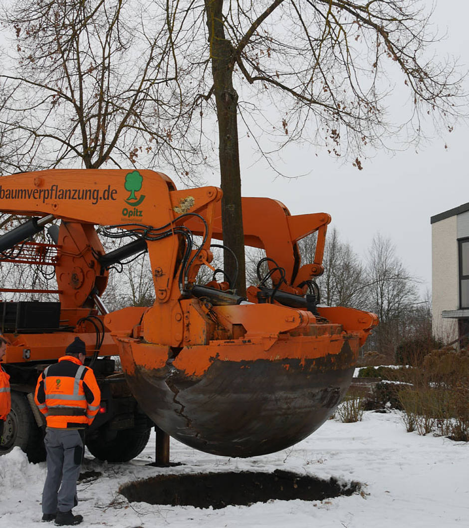 Die Spezialgeräte für Baumverpflanzungen werden von Firma Opitz selbst entwickelt und gebaut. Gerätschaften dieser Art gibt es europaweit nur bei Opitz. Die Mitarbeiter der Firma sind weltweit unterwegs um Großbaumverpflanzungen vorzunehmen.