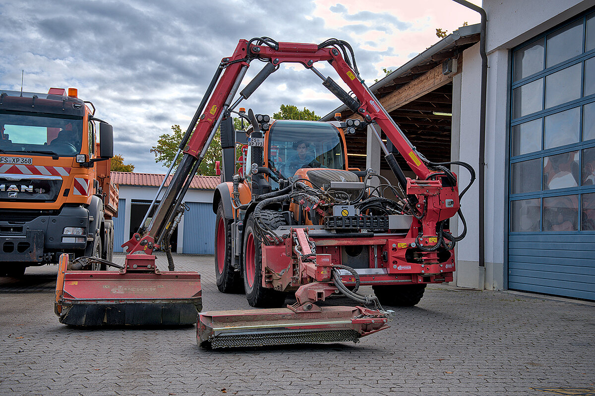 Neben den Straßen an sich sind die Freisinger auch mit der Pflege des Straßenbegleitgrüns beschäftigt. Hier kommen zwei Fendt-Schlepper mit Dücker-Auslegermäher zum Einsatz. Ist insektenschonendes Mähen in Freising auch schon ein Thema? „Noch nicht“, sagt Karl. Grund: „Die bestehende Technologie ist noch nicht ausgereift, und am Ende ist es auch eine Kostenfrage.“