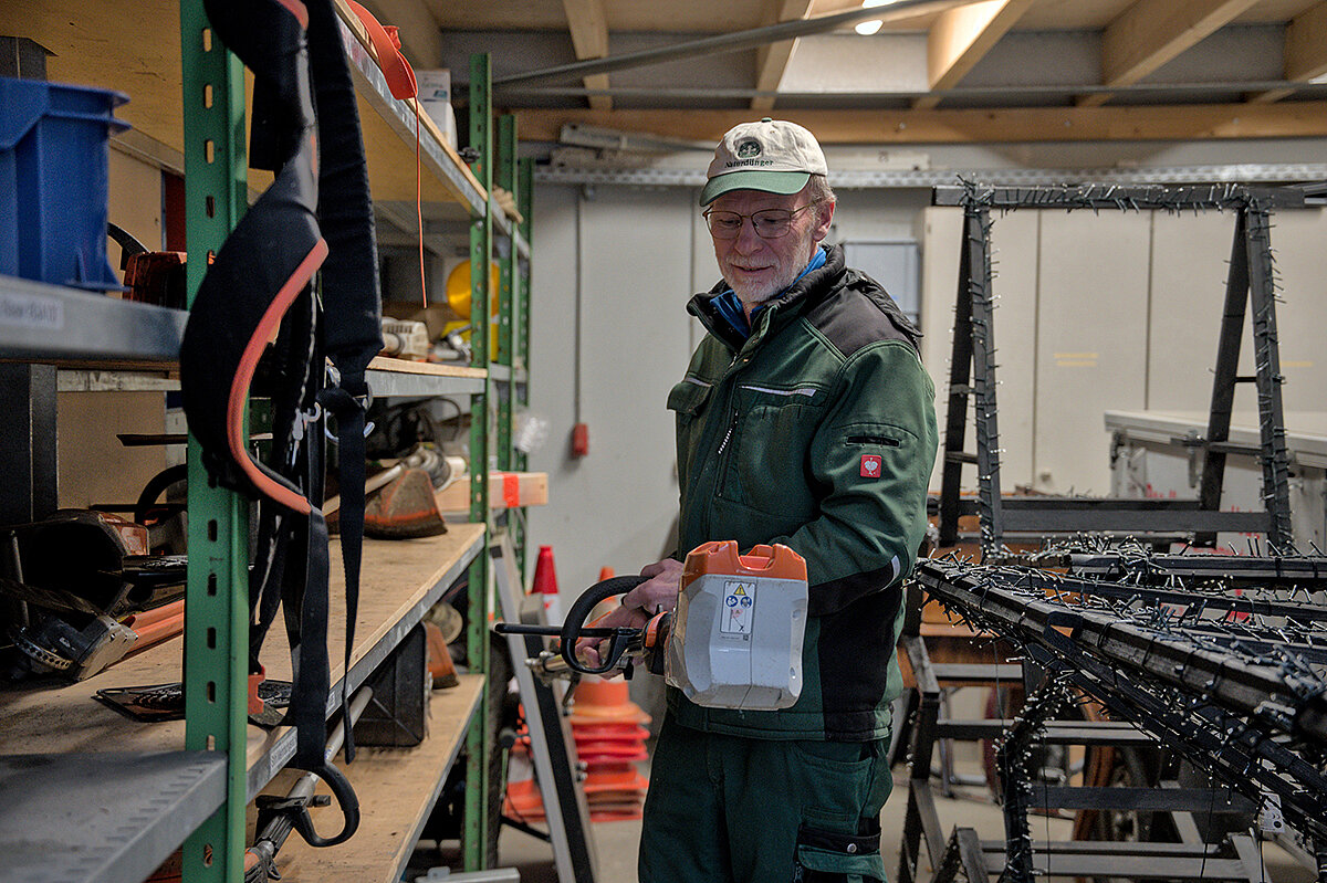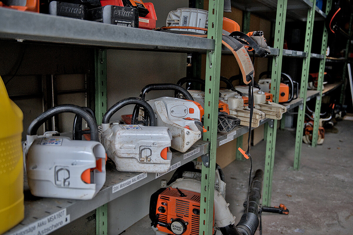 Doch Zeit für eine Verschnaufpause bleibt nicht, denn der Arbeitsplan ist straff organisiert. „Der Großteil meiner Mannschaft ist zurzeit am Lauben“, berichtet der Bauhofleiter. Sämtliches Laub wird mit Blasgeräten zusammengeführt und von einem Gianni Ferrari PG270-Mäher aufgenommen. Bei der Entsorgung kooperiert der Bauhof mit einigen Landwirten vor Ort. Anstatt das Laub auf herkömmlichem Wege zu beseitigen, wird es mit einem Miststreuer auf den Äckern der Region ausgebracht. „Ich kann das gar nicht beziffern, wie viel das ist, aber es sind sind auf jeden Fall etliche Container, für die wir Entsorgungskosten sparen“, so Kofler. In den kommenden Monaten steht auch das Thema Baumschnitt auf dem Programm. „Wir mieten dann für eine Woche eine Hebebühne und schneiden alles, was anfällt.“