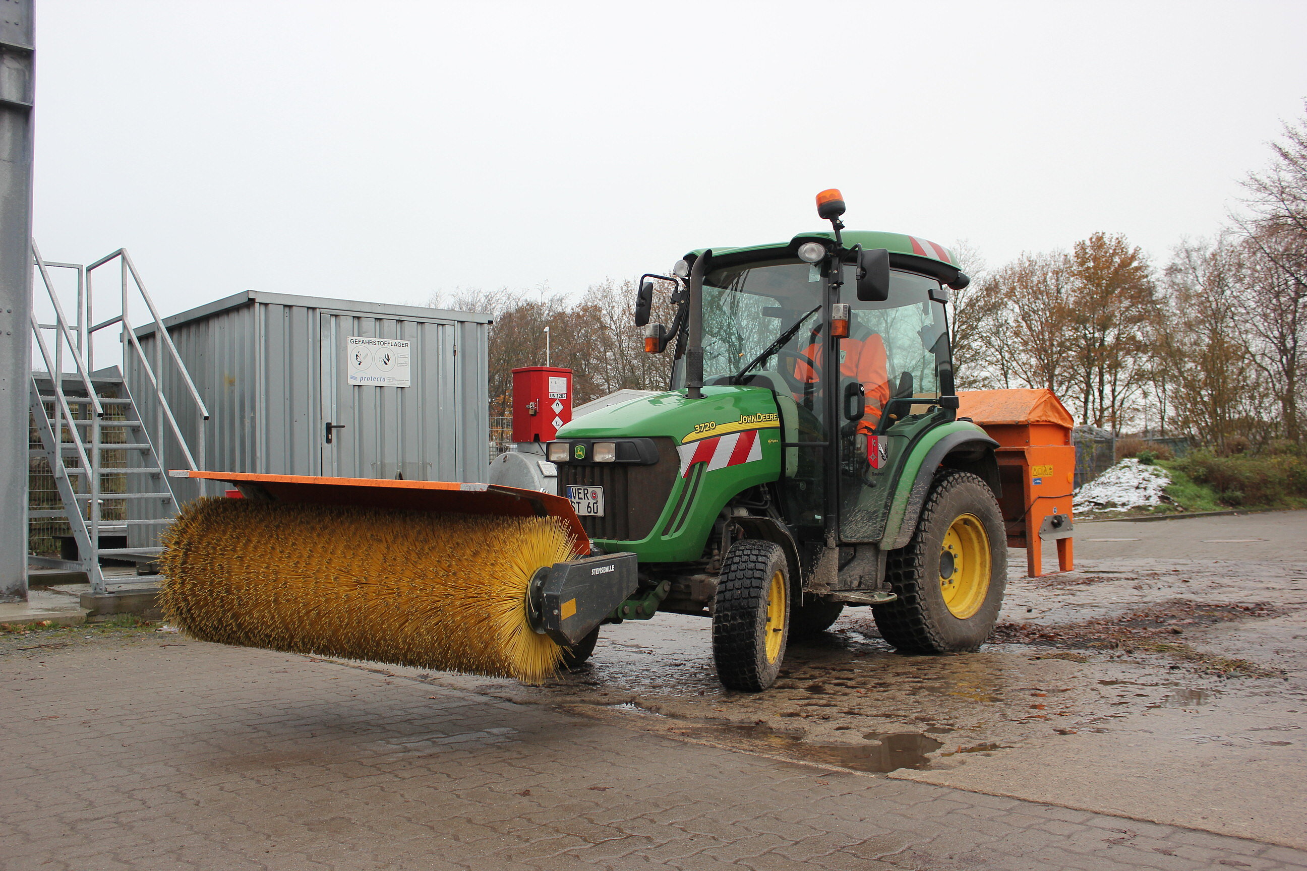 Zur Ausführung des Winterdiensts auf Großflächen kommen John-Deere und Iseki -Kleintraktoren zum Einsatz.