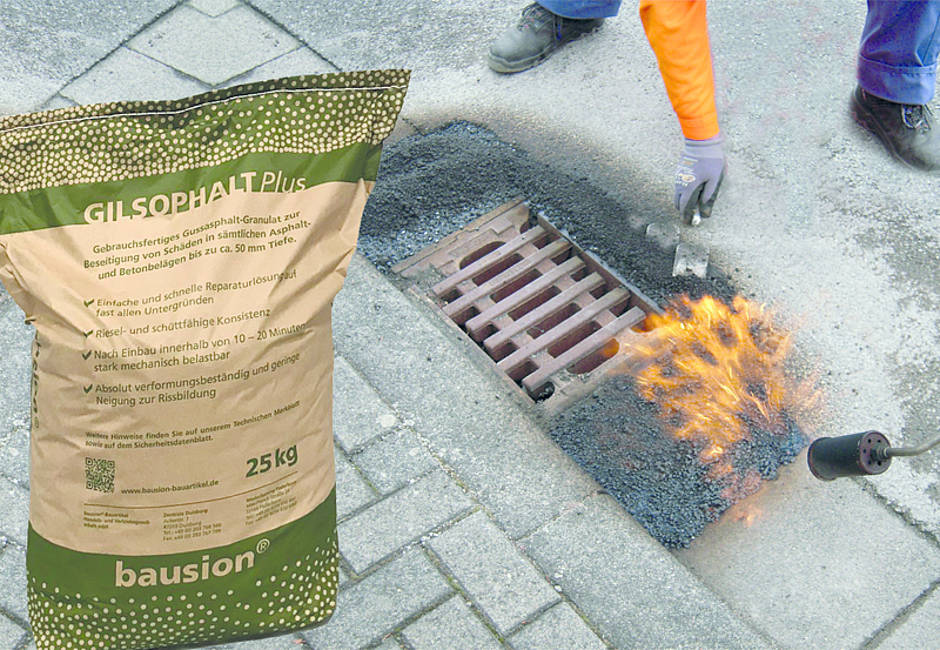 Ausgangspunkt war die Entwicklung des neuen gebrauchsfertigen und lösungsmittelfreien Gussasphalt-Granulats GILSOPHALT Plus, das heiß – mittels Brenner eingebaut – die gleichen Eigenschaften wie normaler Gussasphalt aufweist. Es zeichnet sich durch eine besonders trockene und schüttfähige Konsistenz aus und verklebt nicht mehr. Damit lässt es sich zusätzlich und problemlos pelletiert oder granuliert auch in Absackanlagen für umweltfreundliche Papiersäcke abfüllen. Besondere nässe- und reisfeste Papiersäcke nehmen das Material auf. Sie sind so stabil, dass sie ohne das normalerweise verwendete dünne Kunststoff-Folien-Inlet auskommen.