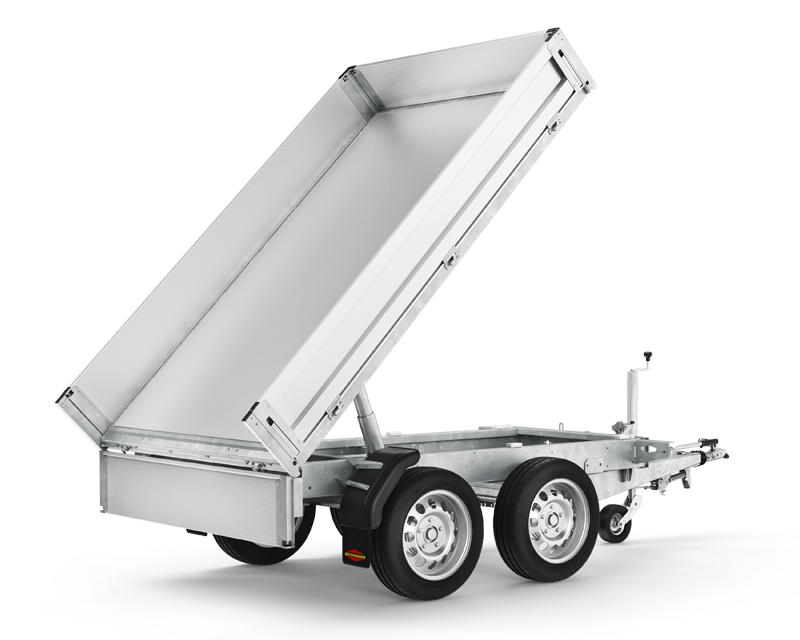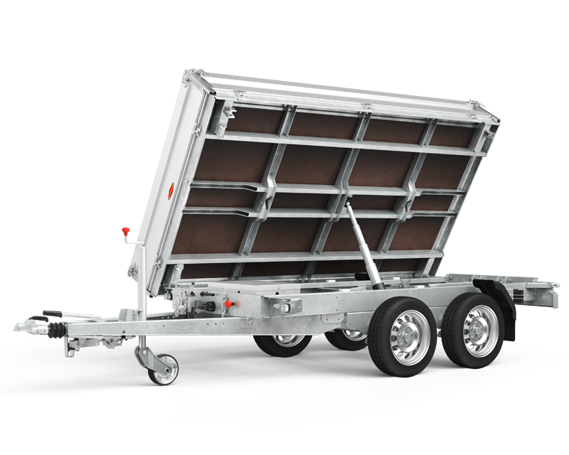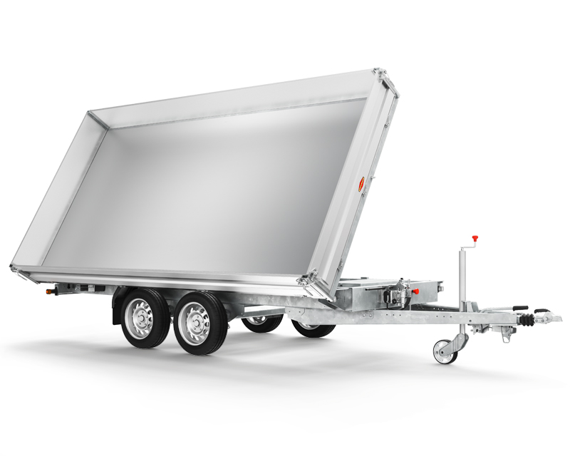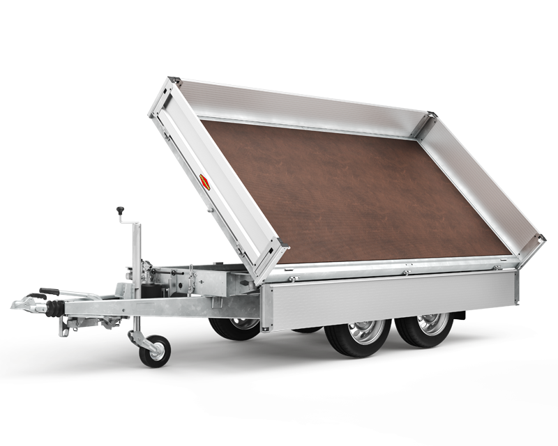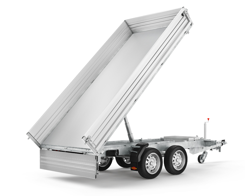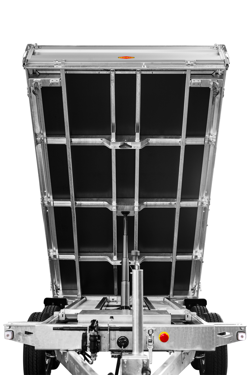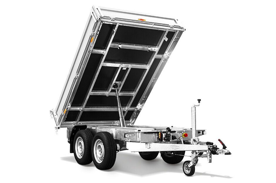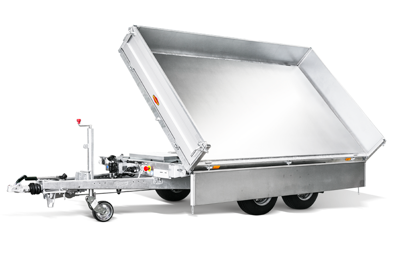 Bereits die Kipper in der Basic-Serie verfügen über einen beeindruckenden Kippwinkel von 45° und eine neue Auffahrschienenhalterung und Sicherung. Es gibt außerdem eine Schienenablage auf der Unterbrücke, sodass die Schienen sicher verstaut werden können und nicht auf der Ladefläche transportiert werden müssen. Alle Dreiseitenkipper sind mit vertauschungssicheren Steckbolzen versehen, sodass Fehler beim Kippvorgang minimiert werden. Das vordere Lager garantiert durch einen definierten Freiheitsgrad das Setzen der Oberbrücke, auch bei nicht optimaler Verteilung der Ladung. Ein großer Vorteil ist der bei der Konstruktion erreichte Böschungswinkel und die hohe Bodenfreiheit. Diese ermöglichen es dicht an das zu transportierende Gut heranzufahren.