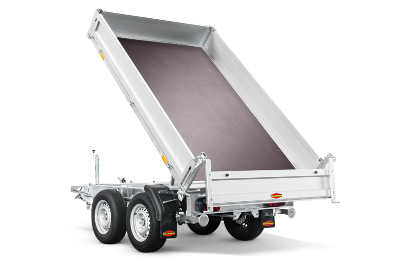 Die neuen Kippanhänger von Böckmann mit den Modellreihen Basic und Profi zeichnen sich durch technische Innovation, neue Konstruktion und eine hohe Qualität aus. Die Fahrzeuge – vom Rückwärtskipper, über den Alu- oder Stahl-Dreiseitenkipper bis hin zum Tridem-Anhänger – weisen eine besonders robuste und stabile Konstruktion auf. Die neu gedachte Bordwandkonstruktion ermöglicht den verlustfreien Transport durch eine mechanische Abdichtung – laut Unternehmen einzigartig im Markt. Darüber hinaus wurde ein Profil in die Bordwand integriert, in dem die Position von Netzhaken spielend einfach und flexibel angepasst werden kann. Die Bordwände sind so konstruiert, dass sie verschmutzungsfrei und dadurch wartungsarm sind. Die versenkten und klapperfreien Zurrbügel sind durch ein neu gestaltetes Profil möglich. Dieses fällt zu den Seiten ab und verzichtet auf Vertiefungen und Rillen, in denen sich Schmutz absetzen kann.