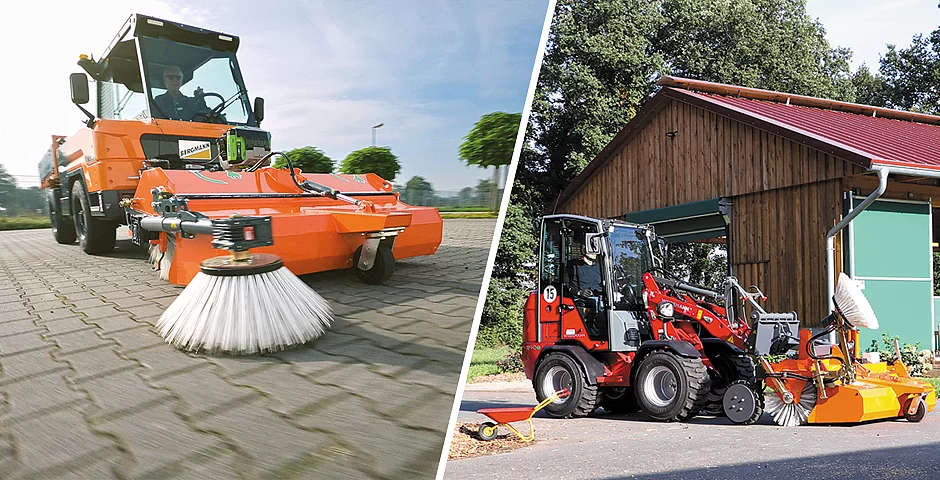 Für elektrische Trägerfahrzeuge eignen sich des Weiteren auch die beiden neuen radangetriebenen Kehrmaschinen: bema Sweezy 25 Dual WD und bema Sweezy 40 WD. Das WD steht hierbei für einen effizienten Radantrieb. Hierbei ist das Prinzip ganz einfach: Wenn sich das Rad der Kehrmaschine dreht, dreht sich die Kehrwalze. Dadurch wird keine hydraulische Energie vom Trägerfahrzeug, zum Beispiel einem Radlader, Hoflader oder Gabelstapler, benötigt. Somit sind die Sweezy-Kehrmaschinen unabhängig vom Trägerfahrzeug und besonders attraktiv für den Einsatz an elektrischen Fahrzeugen. Hier verlängern sich die Betriebslaufzeiten, da die Umwandlung von elektrischer in hydraulische Energie entfällt. Im Vergleich zum Betrieb einer konventionellen Kehrmaschine benötige der Anwender mit seinem E-Fahrzeug 50 Prozent weniger Energie, so die bema-Spezialisten. Dies verlängere die Laufzeit, spare Betriebskosten und ist gut für die Umwelt. Beide Modelle sind ebenfalls nach dem „PLUG & SWEEP“-Prinzip im Handumdrehen angebaut und sofort einsatzbereit.