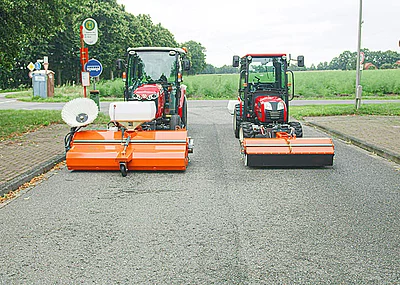Alternativ zum Schneeschild kann für die Räumung geringerer Schneemengen auch eine Kehrmaschine konfiguriert werden. Hier stehen aktuell drei Modelle in Arbeitsbreiten von 1250 bis 2600 mm zur Verfügung. Für den Winterdienst sind die Kehrmaschinen von bema bereits standardmäßig mit einer Schnee-Kehrwalze und einem Spritzschutz ausgestattet. Darüber hinaus können sie mit weiteren optionalen Komponenten individuell angepasst werden.