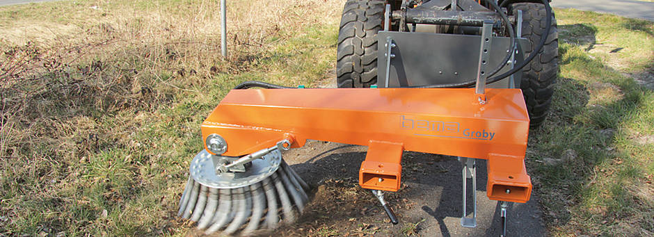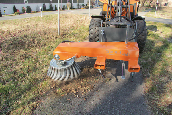 Für den Einsatz gegen groben Schmutz auf Wegen und Straßen ist der bema Groby mit Kunststoff ummantelten Drahtseilzöpfen ausgestattet, die eine hohe Belastbarkeit und optimale Kehrergebnisse garantieren. Verschiedene, optionale Besätze ermöglichen einen flexiblen Einsatz, sodass der bema Groby unterschiedlichsten Herausforderungen gewachsen ist. Ausgestattet mit dem Stahlteller (ø 700 mm) mit 44 Schraubbüscheln befreit er öffentliche Wege gründlich und unkompliziert von Wildkraut. Bei hartnäckigsten Verschmutzungen eignet sich der optionale Besatz mit Kunststoffteller mit PPN (ø 1100 mm) mit seiner aggressiven Reinigungsleistung ideal.