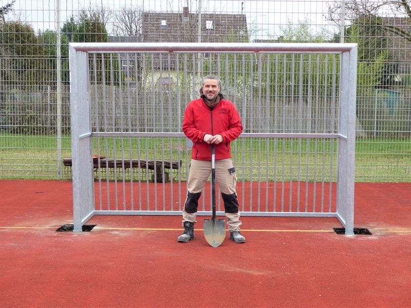 Die eingebauten Bolzplatz-Tore stammen aus eigener Herstellung – jedes hat ein Gewicht von ca. 160 kg. Die Besonderheit: Pfosten und Latte sind aus einem runden Rohr und besonders schwer. Der Durchmesser beträgt 88,9 mm bei einer Materialstärke von 3 mm. Dieses Rohr wird eigentlich im Gasleitungsbau verwendet. Solche Bolzplatz-Tore sind ausschließlich bei der BEPA-Torfabrik erhältlich. Das Unternehmen liefert – auf Wunsch auch mit Einbauservice – nach Deutschland, Österreich, Schweiz, Luxemburg, Liechtenstein und Polen.