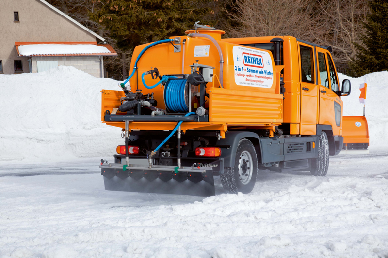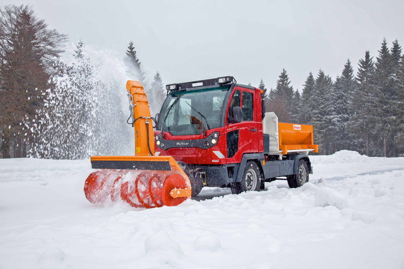 Wer maximale Einsatzflexibilität sucht, findet diese bei den Multicar-Geräteträgern und -Transportern. An drei Anbauräumen lassen sich über hundert am Markt erhältliche An- und Aufbaugeräte einfach anbringen. Allein schon für den professionellen Winterdienst wird hier eine breite Auswahl geboten: von manuellen, halbautomatischen oder voll wegeabhängigen Aufsatzstreuern und Heckanbaustreuern für Salz oder Trockenstoff, bis hin zu Solesprühern. Außerdem Seitenschneepflüge, Keil-Vario-Pflüge, Frontkehrmaschinen und Frässchleudern – um die wichtigsten zu nennen. Die einzelnen Geräte werden durch die leistungsstarken Hydraulikvarianten der Geräteträger angetrieben und lassen sich innerhalb kurzer Zeit in Einmannbedienung wechseln.