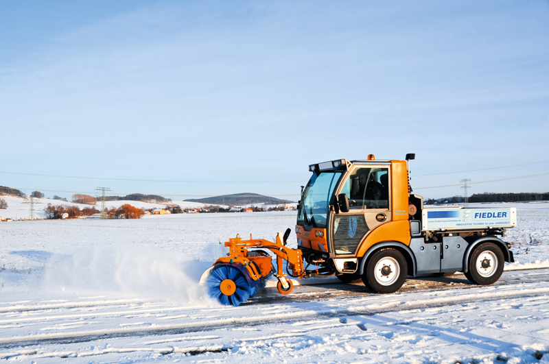 mit An- und Aufbaugeräten für den Winterdienst ausrüsten. Für den „kleinen Winterdienst“ sind Anbaustreuer, im „großen Winterdienst“ professionelle Aufbau-Silostreuer mit bis zu 800 Litern Kapazität für das flächendeckende Streuen von Straßen sowie Geh- und Radwegen verfügbar. In Verbindung mit Frontkehrmaschine und Räumschildern gelingt so die effektive Schnee und Eisbekämpfung - mit der Option „schneller Winterdienst" mit bis zu 45 km/h!