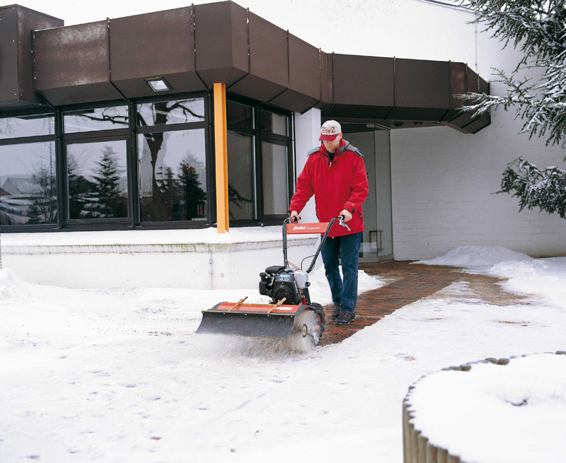 Was die Großen können, meistert der handgeführte Geräteträger Variette im Kleinen. Wenn der erste Schnee den Weg zur Eingangstür in seinen weißen Bann schlägt, schiebt man mit ihrem bis zu hundert Zentimeter breiten Schneeschild den Schnee mühelos zur Seite. Und wenn es nur mäßig schneit, dann lässt sich einfach auch eine Kehrmaschine anbringen.