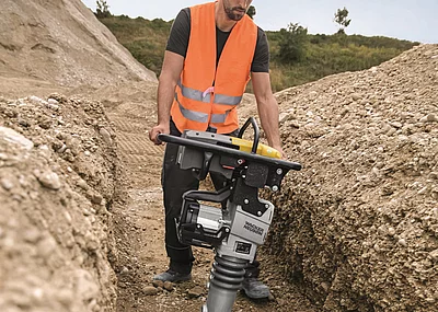 Eine Aufgabe der BG Bau ist es, Arbeitssicherheit und Gesundheitsschutz im Betrieb und am Arbeitsplatz, ganz konkret beispielsweise bei Verdichtungsarbeiten in Gräben, zu gewährleisten. Bediener von Stampfern oder Vibrationsplatten sind bei Verdichtungsarbeiten in beengten Verhältnissen wie in Gräben einsatzbedingt den Abgasemissionen der Geräte verstärkt ausgesetzt. Um die Gesundheitsgefährdung des Bedieners bei solchen Einsätzen zu verringern, fördert die BG Bau Stampfer und Vibrationsplatten mit verringerten Emissionswerten. Der Förderbetrag pro Maßnahme liegt bei bis zu 50 Prozent der Anschaffungskosten (max. 500 Euro). Ziel der Förderung ist es, durch die Arbeitsschutzprämie einen Austausch älterer Stampfer und Vibrationsplatten gegen neuere Modelle mit verbesserten Emissionswerten herbeizuführen.