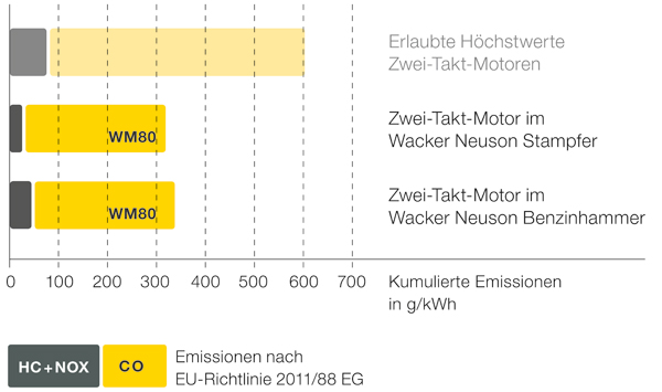 Wacker Neuson legt schon bei der Produktentwicklung großen Wert auf Wirtschaftlichkeit und Umweltschutz. Um Produkte zu kennzeichnen, die diesen Kriterien in besonderem Maß entsprechen, wurde 2013 das Wacker Neuson ECO-Siegel eingeführt. Dieses Siegel macht die gelebte Unternehmens- und Innovationskultur von Wacker Neuson für Kunden sichtbar. Die von der BG Bau geförderten Akkustampfer sind damit ebenso gekennzeichnet wie die Stampfer mit dem Zweitaktmotor WM80, der übrigens auch in den Benzinhämmern von Wacker Neuson zum Einsatz kommt.