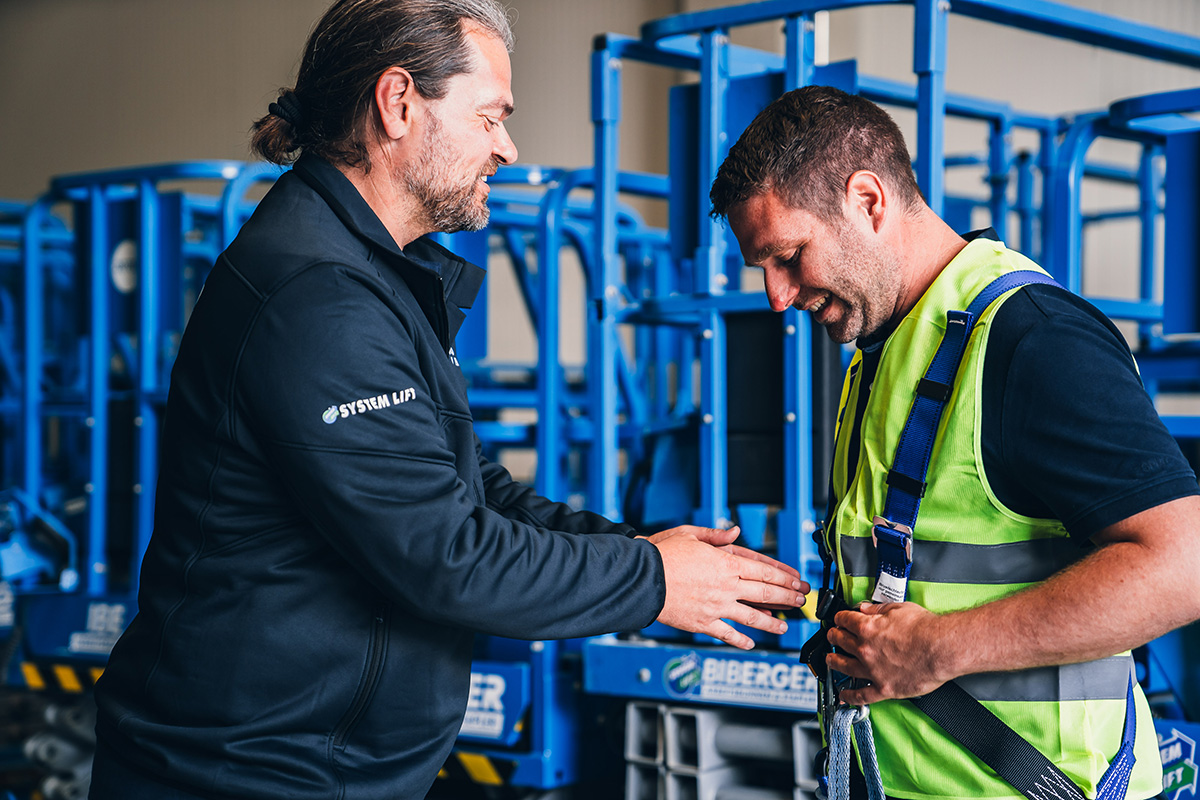 Daneben umfasst der praktische Teil den Gerätecheck und die tägliche Sichtprüfung, die Bedienung der Bühne unter realen Bedingungen sowie das Anfahren enger Bereiche und den Höhenzugang in beengten Umgebungen. Darüber hinaus werden das Verhalten bei Notfällen und Störungen, die sichere Positionierung und Abstützung sowie die Einweisung in die Anwendung der PSA (falls erforderlich) trainiert. Zum Abschluss erfolgt eine praktische und schriftliche Prüfung. Nach erfolgreichem Bestehen wird der „System-Card“-Bedienerausweis ausgestellt, der bundesweit gültig ist.