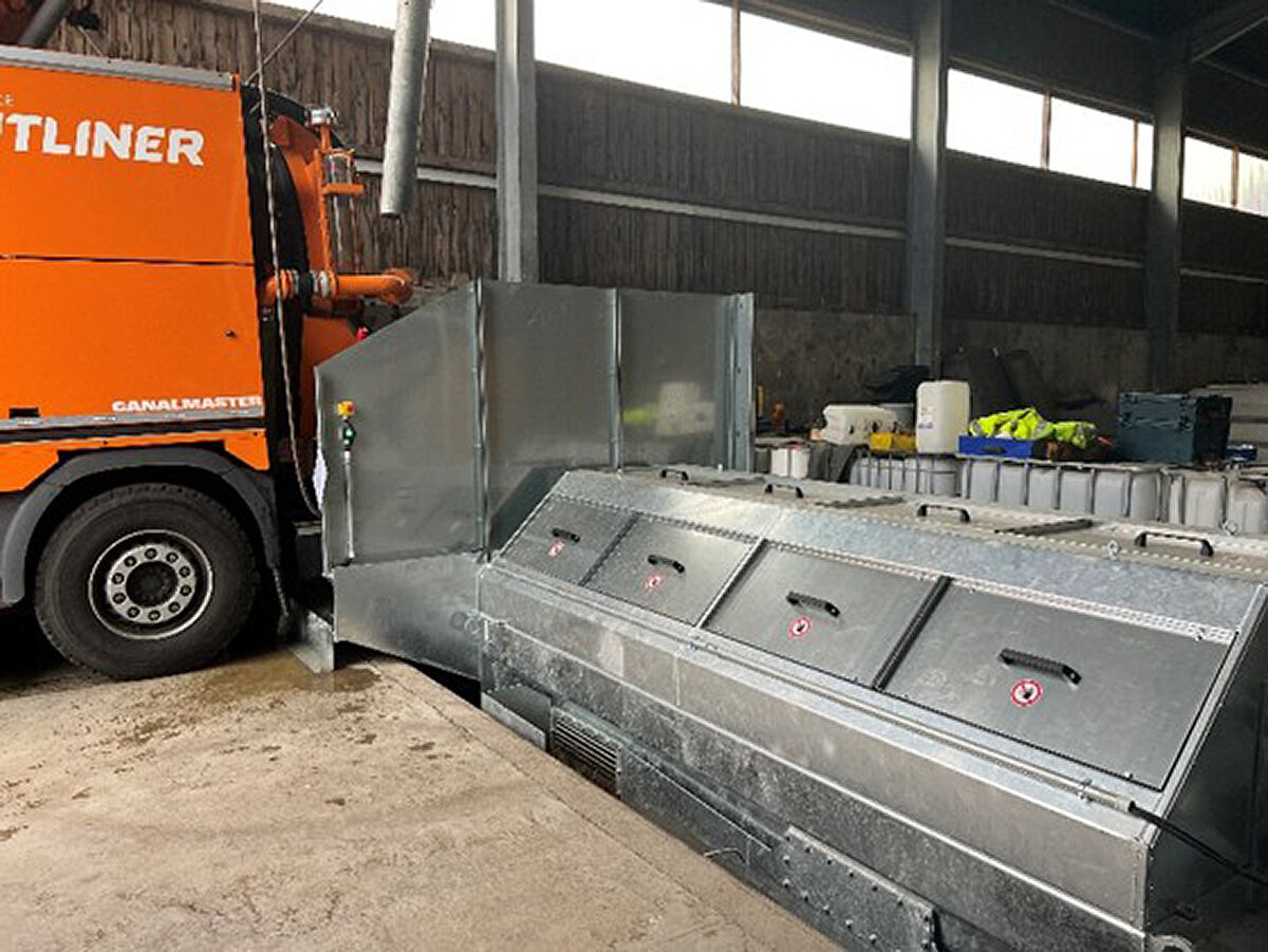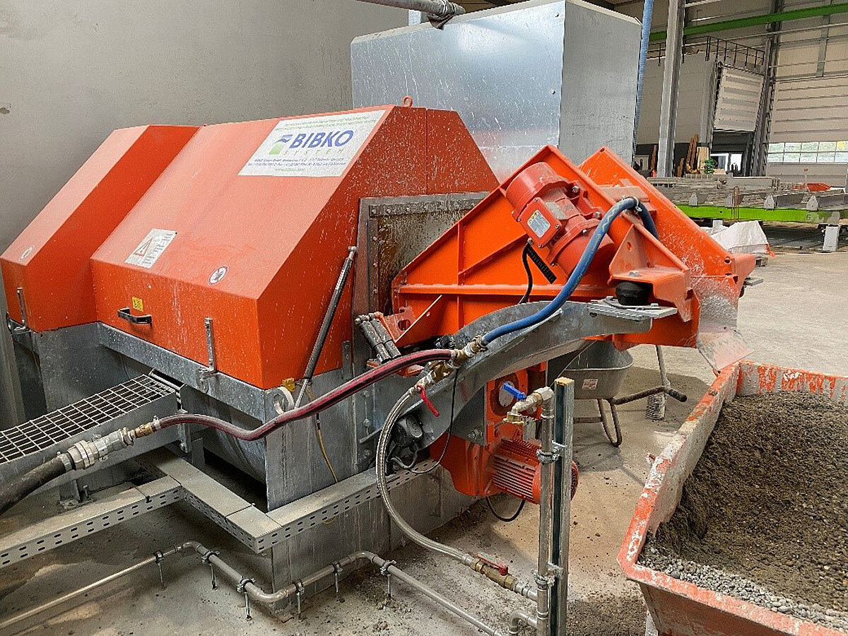 Diese Zielsetzung führt entweder zur Reduzierung der Entsorgungskosten oder im Idealfall zum eignungsgeprüften Baustoff. Um Warte- und Stillstandszeiten bei der Materialaufgabe zu reduzieren, wurde nun Recyclinganlage vom Typ IT-1500/1_BW-TR mit einer Leistung von vier m³/h weiterentwickelt und mit einem Dosierpuffer ergänzt. Dieser Dosierpuffer ermöglicht hierbei eine schnelle, stoßweise Entleerung der Fahrzeuge. Anschließend erfolgt die Verarbeitung kontinuierlich in der Recyclinganlage.