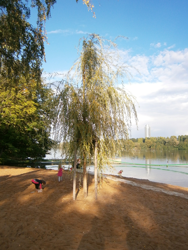 Die Weiden gliedern das Areal und geben dem Strandabschnitt Struktur, ohne ihn zu überfrachten. Anderseits bekommen die Besucher die Möglichkeit, sich etwas abzuschirmen. Der durchaus bizarre Wuchs der Bäume wiederum lockt das Auge und regt die Fantasie des Betrachters an.
