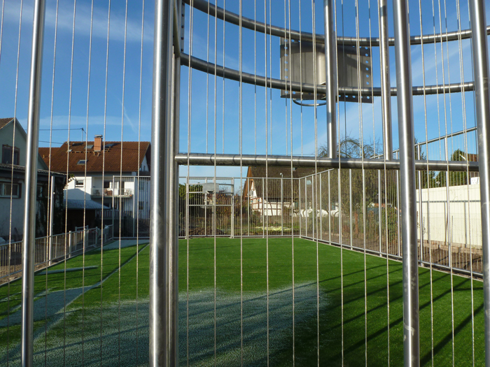 besonders leise Multisportanlage durch senkrechte gespannte Edelstahlseile