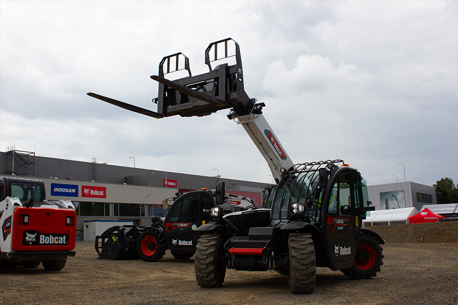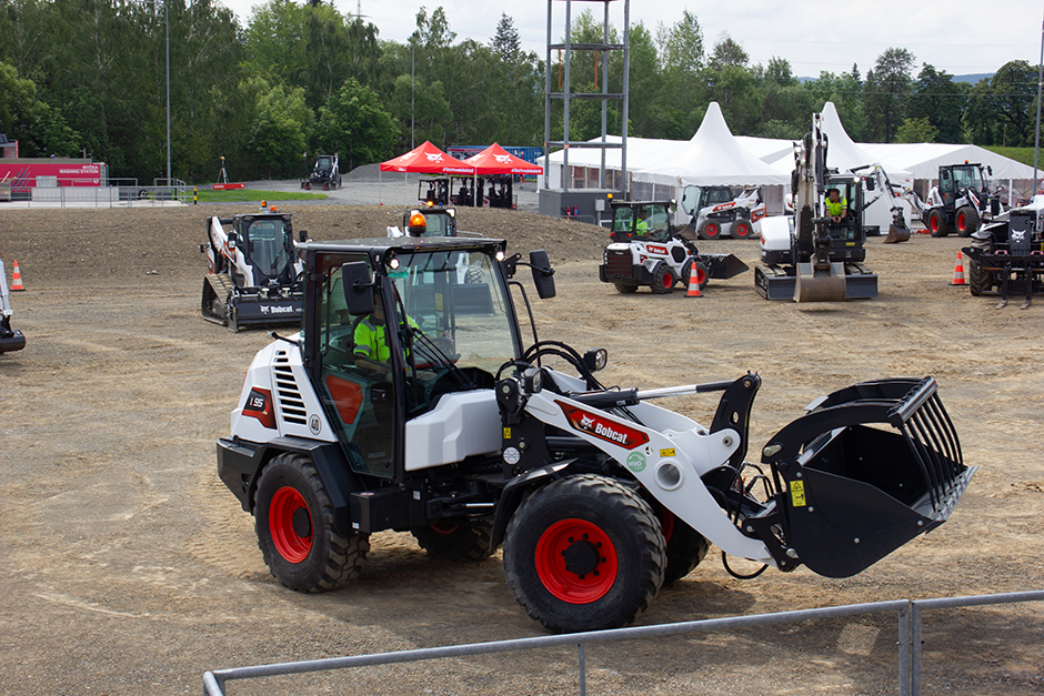 Jeder fängt mal klein an, auch Maschinenhersteller. So wurde der erste Bobcat-Lader laut offizieller Unternehmenshistorie lediglich dafür konzipiert, um die Scheune eines Bauern im amerikanischen North Dakota zu säubern. Von solchen bescheidenen Anfängen ausgehend hat sich das Unternehmen in den vergangenen 77 Jahren auf breiter Front weiterentwickelt, wie die zahlreichen Maschinen auf dem Firmengelände im tschechischen Dobříš demonstrieren: Bagger heben Gräben aus, Radlader transportieren Heuballen über einen Parcours und weiter entfernt befördert ein Roto-Teleskop Besucher in die Höhe. Dahinter liegt die graue Werkhalle, in der pro Jahr 25.000 Maschinen gefertigt werden und das Innovation Center, in dem die Ingenieure des Unternehmens an neuen Technologien forschen. „Da können wir euch aber leider nicht hineinlassen“, scherzt ein Mitarbeiter. „Zu viele Geheimnisse.“