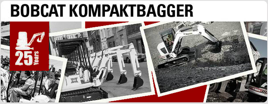 25 Jahre später setzen Bobcat Kompaktbagger weltweit den Standard hinsichtlich Leistungsfähigkeit, Qualität, Zuverlässigkeit und Haltbarkeit. Die Reihe umfasst derzeit 13 verschiedene Kompaktbaggermodelle mit 1-8 t Betriebsgewicht und sowohl konventionellem als auch ZTS-Heckdesign.