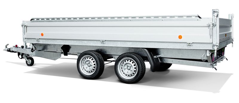 Neben den neuen komplett überarbeiteten Produktfamilien werden auch die bewährten Kippanhänger präsentiert – diese sind ideal für den professionellen Einsatz. Die Kombination aus robuster Konstruktion und extra großem Ladevolumen, aber auch die optimale Ausnutzung zeichnen diese Fahrzeuge aus. Die Pendelbordwand mit erhöhten Stahleckrungen – für einen großen Durchlass – sorgen für ein absolutes Profiniveau.