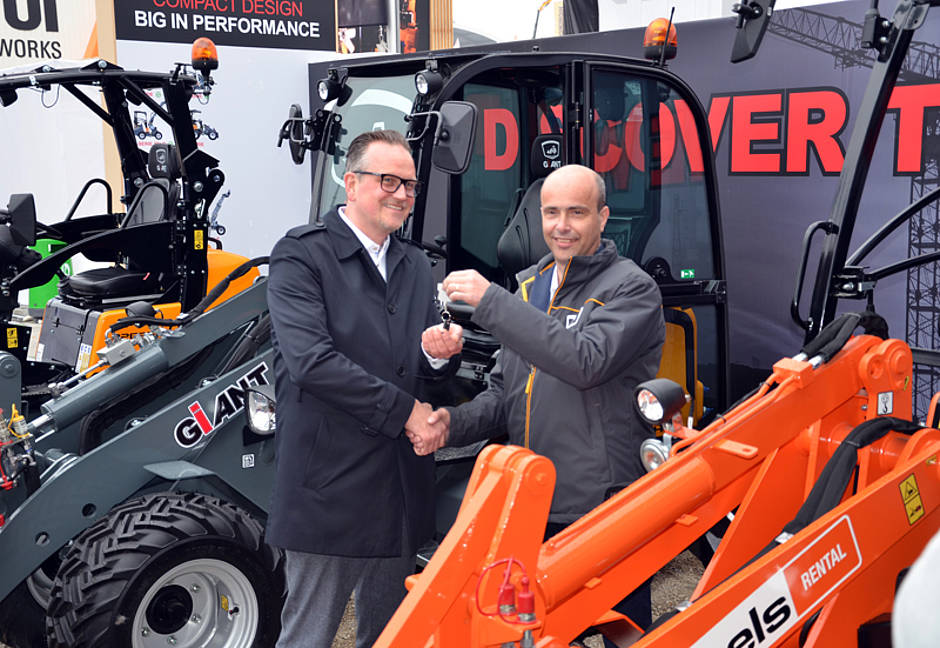 Eine der bekanntesten Mietfirmen Europas hat in 100 neue GIANT-Maschinen vom Typ V452T X-TRA investiert. Während der bauma erfolgte die Schlüsselübergabe für die erste Maschine durch Inhaber und Geschäftsführer von TOBROCO-GIANT, Toine Brock, an den Manager für Produktentwicklung von Boels Rental, Volker Blome. Seit Mitte April werden die Maschinen in Teilmengen über das Jahr hinweg geliefert. Die kompakten Radlader sind dann an Standorten in den Niederlanden, in Belgien, Luxemburg, Deutschland, Österreich und in der Schweiz verfügbar.